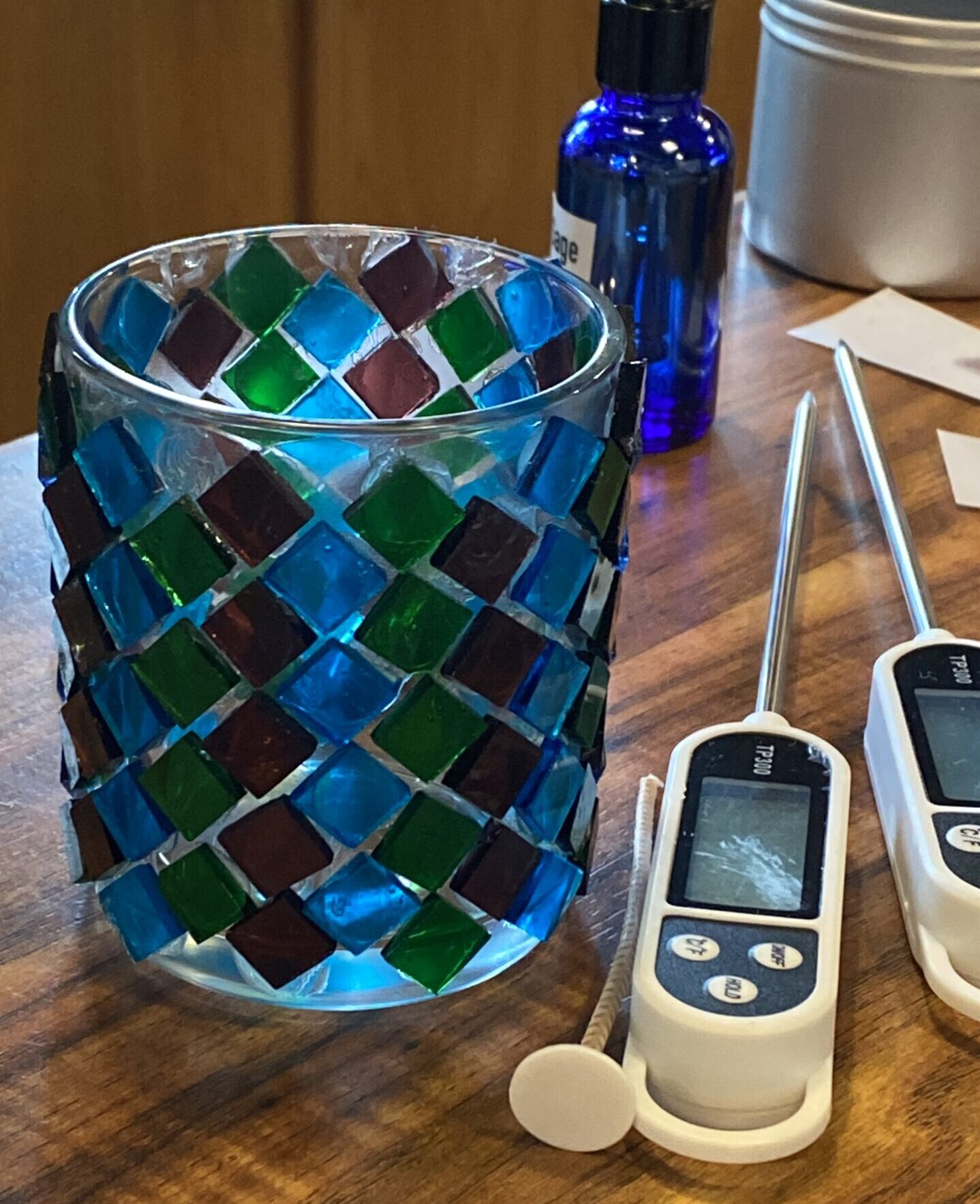 It’s time to expand that mosaic repertoire and venture into applying this beautiful process to glass! In this relaxing session, you’ll get to use beautiful colored glass chips in making a stained glass mosaic candleholder, after which you’ll learn the basics of scented candlemaking, and get to bring home your very own hand-poured candle in the mosaic glass holder you just made!