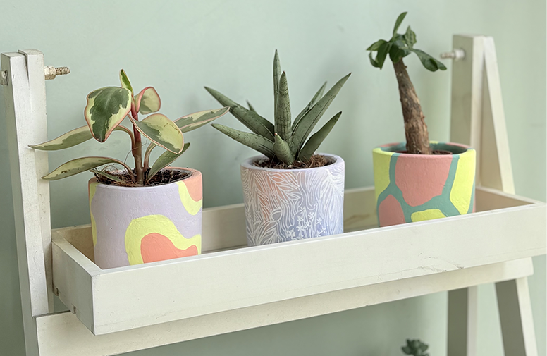 Paint your own terracotta pot using our custom pastel palette — soft, cohesive colors mixed specifically for this workshop. Then, repot a low-maintenance plant handpicked by plant enthusiast Kia. We’ll share painting tips and inspo to get you started, then let you do your thing.