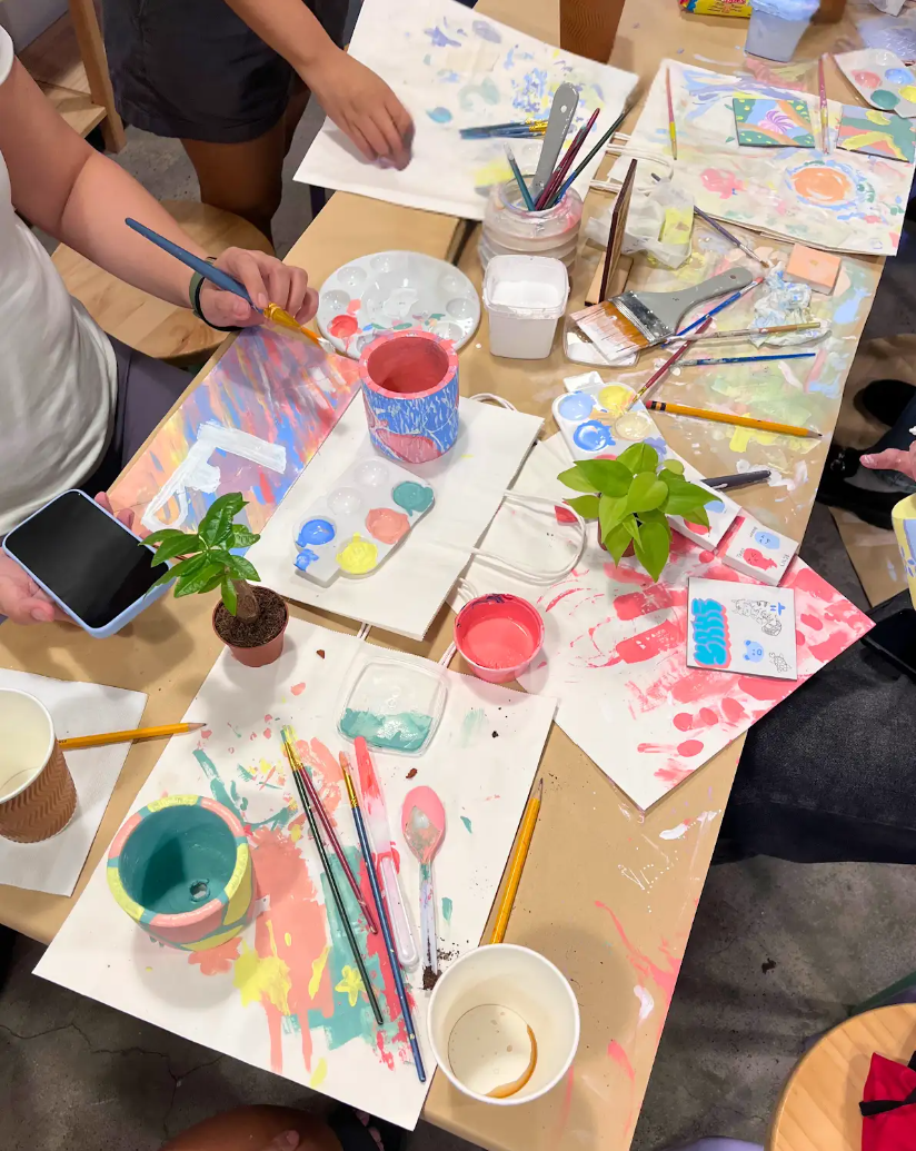 Expect an Olivia Dean playlist, a happy mess of paints on the table, and a safe space to make imperfect art.